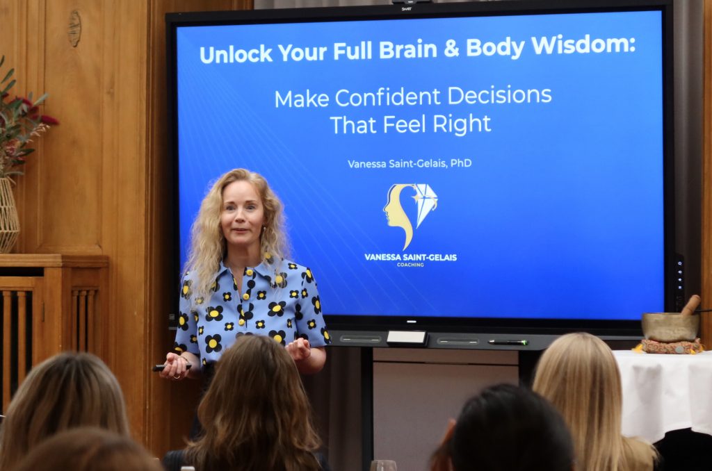 Drawing from neuroscience, mental health coaching, and holistic methodologies, Dr. Vanessa Saint-Gelais brings a distinctive, science-backed approach: transformation that integrates mental wellbeing with professional excellence for lasting impact.